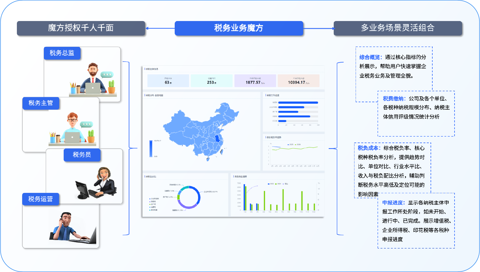 平台以“灵活、合规、智能、增效”为核心,为企业打造更精准、更便捷、更合规的税务管理体验,实现从被动应对到主动管理、从经验判断到数据决策、从成本中心到价值创造的三大跨越。其核心优势体现在四大维度: